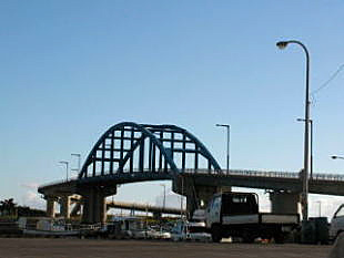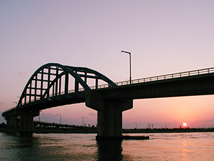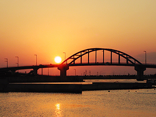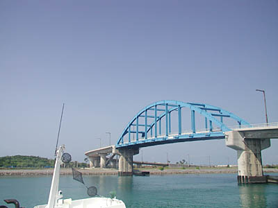 サザンゲートブリッジ 石垣島の南にあり人工島への掛け橋となっています。遊歩道もあり気軽に人工島の海浜公園にも行けます。夜は青く輝きイルミネーションは島らしくない感じ。